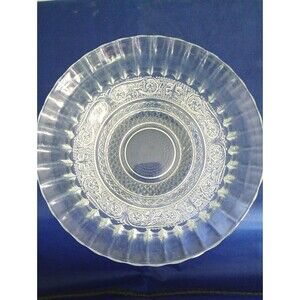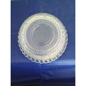 Kig/Malaysia Pressed Glass Clear Serving Bowl Fleur De Lis Trellis Design