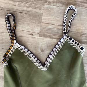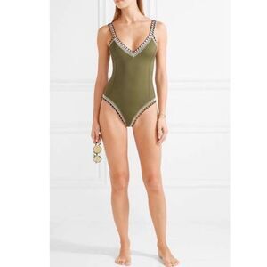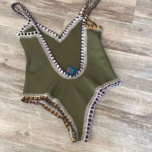 Kiini Wren Swimsuit Scoop Back Maillot Crochet One Piece High Cut Olive Green S