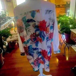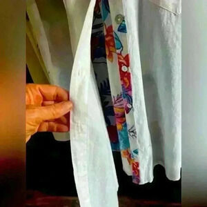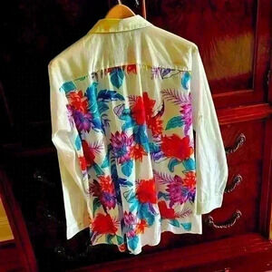 KiKiSol ladies boyfriend shirt. Ladies Large. Perfect with white jeans. Great as a swimsuit cover up. Beautiful bright colors. Great for summer. Sleeves that can roll