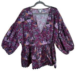 Kika Vargas For Target Colorful Purple Floral Balloon Sleeve Wrap Blouse Size 3X