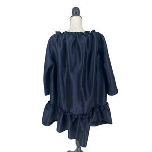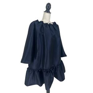 Oversized mini dress in silky taffeta fabric with a playful ruffle hem.