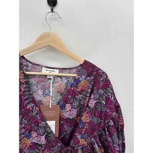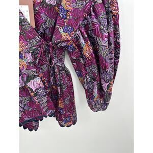 Kika Vargas Target Blouse Women Large NWT Purple Wrap Front Puff Sleeve
