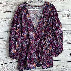 Kika Vargas X Target Top plus size 2X Coral Reef Scallop Edge Wrap Floral Blouse