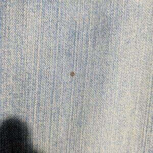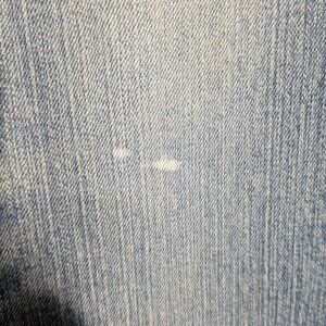 I don't really wear jeans, but these I wore maybe once a month for about a year, comfy. There is 2 small mark (photo). Not sure if the one will wash out. The other is bleach. Good pants to splatter with bleach to salvage.