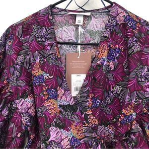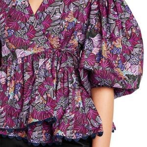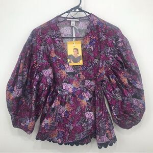 Kika Vargas X Target Purple Floral Puff Sleeve Wrap Blouse- New With Tags