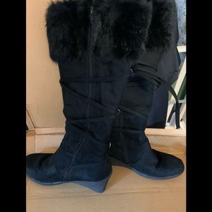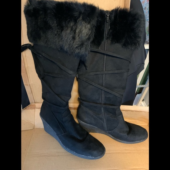 Love love love these boots!! Super cute wedge heel, zip all the way up the back and cris cross tie all the way up! Super cute and comfy for the upcoming fall season!!