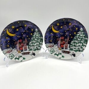 Kiki 1993 CHRISTMAS STAR Ceramic Plates 7.5”, Set of Two, Made in Japan