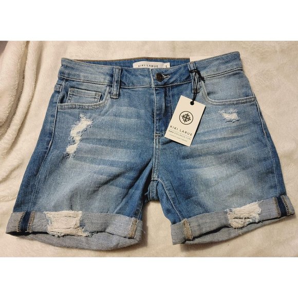 Kiki Larue Distressed Blue Jean Shorts NWT size small..measurements in photos.