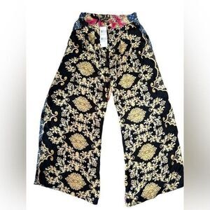 Pink blue black gold. This is a thin light weight fabric pockets on both sides.