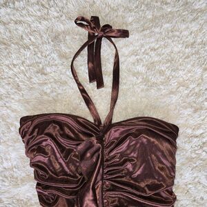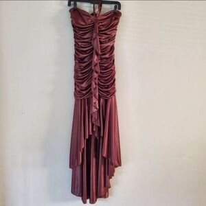 Kiki Vintage High Low Halter Neck Satin Brown Womens Dress Y2k Size Large Goth