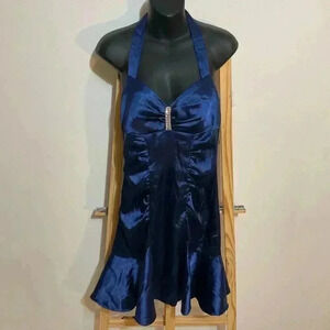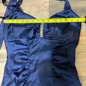 Kiki halter tie prom bodycon mini dress made in the USA,blue size medium