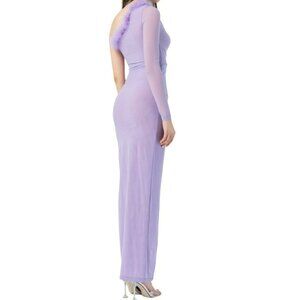 KikiRiki Feathered One Shoulder Front Slit Long Dress Lilac Purple Size Medium N