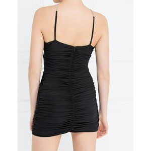 KikiRiki Mesh Ruched Rhinestone V-Neck Cutout Mini Dress Black Size Small NWT