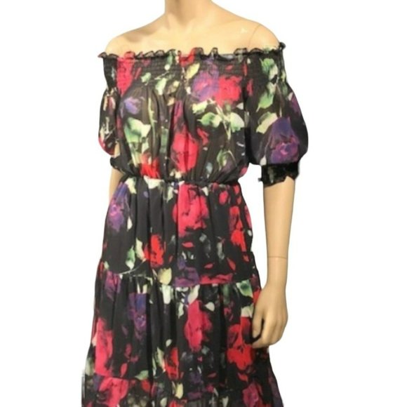 KikiRiki Off-The-Shoulder Sheer Floral Maxi Dress Black Red Size Medium NWT