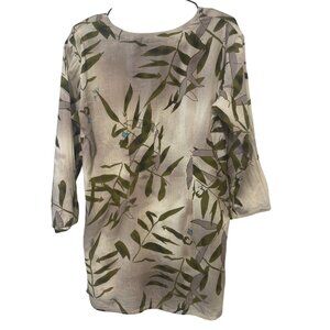 KikiSol Womens Leaf Pattern Tunic Beach Top M Coastal Summer