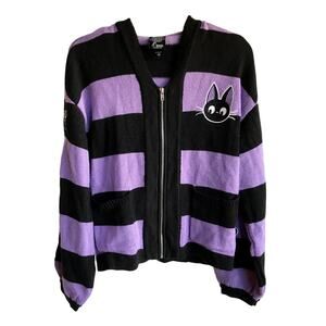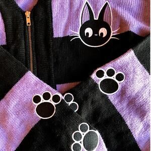 Kikis Delivery Service JiJi Black Cat Purple and Black Stripe Zip Cardigan sz S