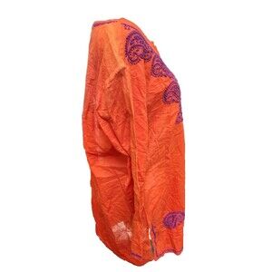 Kikisol Cotton Hippie Top Embroidered Orange Boho Size XL