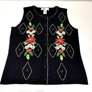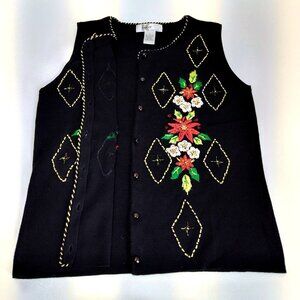 Kikit Christmas Sweater Vest Small Beaded Embroidery Sleeveless Maurice Sasson