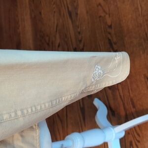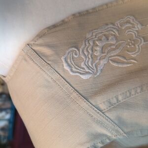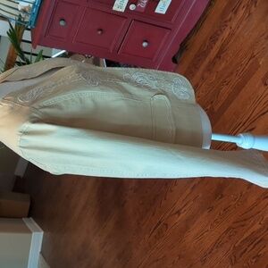 - Kikit Jeans Blazer Jacket Womens L neutral Denim Boho Floral Embroidered Khaki Boho