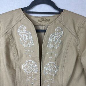 Kikit Jeans Embroidered Jacket Womens M Neutral Bohemian Western Professional