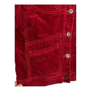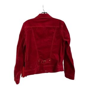 Kikit Jeans Red Corduroy Jacket Women’s Size M Button Front Adjustable Back Belt Vintage Style