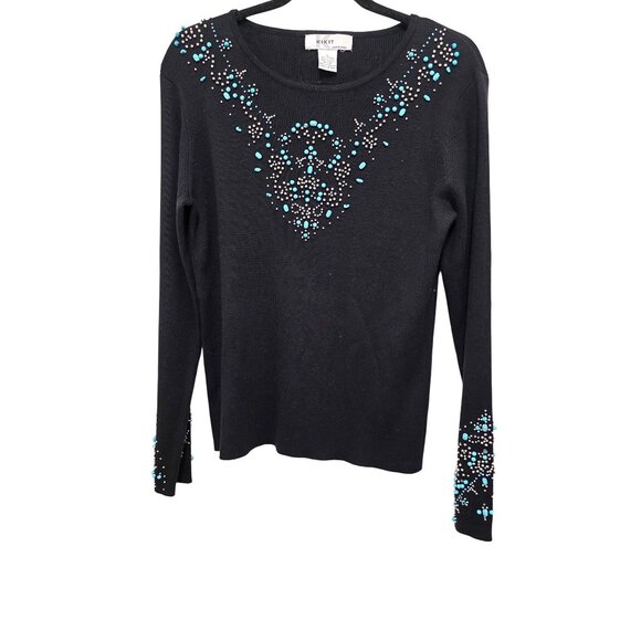 Kikit Maurice Sasson Black Sweater Blue & Silver Bead Embellishments Size L