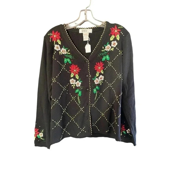 Kikit Women's Beaded Sequin Knit Cardigan Ugly Christmas Sweater Size Small