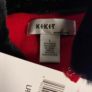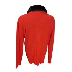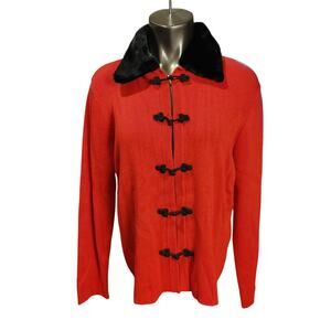 Kikit Womens LG Red Knit Black Faux Fur Trim Longsleeve Cardigan Sweater