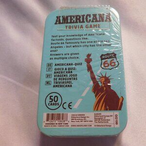 Brand new, sealed Kikkerland Americana Trivia Game, 50 cards and comes in a metal tin
