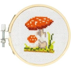 Kikkerland Mini Cross Stitch Embroidery Mushroom Kit, NIB