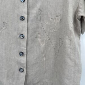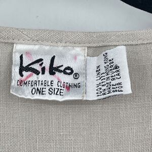 Kiko Comfortable Clothing Tan Linen Embroidered Button Up Tunic Blouse One Size