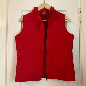 Kiko Red Quilted Vest 100% Silk Women's Medium with Stand-Up Collar