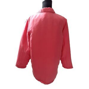 Size: M Color; Pink Armpit to Armpit {front side} 22 " Shoulder {front side} 16" Length From Back Shoulder 32 " Double any "front side" measurements Occasion: casual, travel, Work Type: Jacket Manufacturer: Kiko Top Care Instructions: Machine Wash Made in: China Material: 100% Silk Ref# 106198 Condition: New with tag Pet and Smoke free house Thanks for your consideration in this item and please let us know if you have any questions. And please check my store for more great deals! **Disclaimer** This article of clothing is brand new; the has 2 defects is that the tag on it isn't whole and also es a whole in the last bottom hold but everything else is in good condition. Please see the pictures