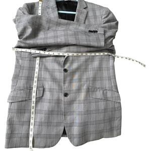 Kilburne + Finch Plaid Sport Coat Gray Black Blazer 46L Tailored Fit workwear