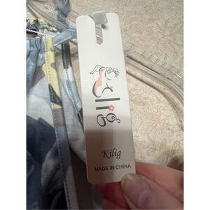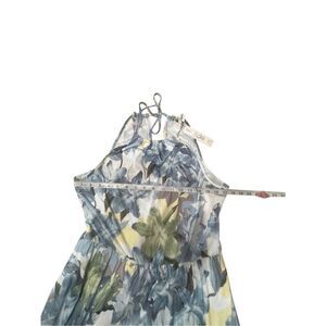 Kilig Wrap Camisole Printed Maxi Dress Sz L NWT Blue, Gray, Taupe, Yellow, Green and white. Elastic waist.