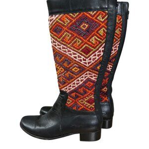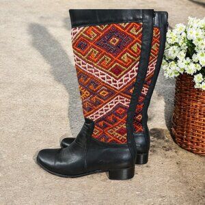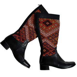 Kilim Collection Suzani Handmade Leather & Wool Knee-High Boots Size 11