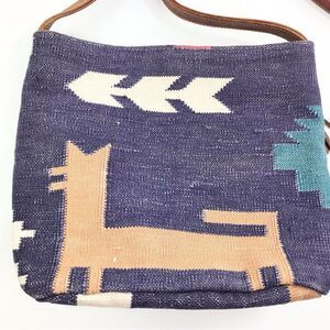 Kilim Purple Blue Tribal Ethnic Rug Design India Leather Strap Shoulder Bag
