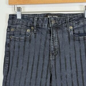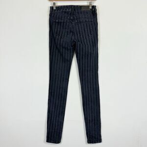 Kill City Original Cult Striped Skinny Hi Wire Goth Punk Denim Jeans. Lightly intentionally distressed. The size is missing, but they measure similar to a Women's 27 waist. Please see measurements below.