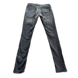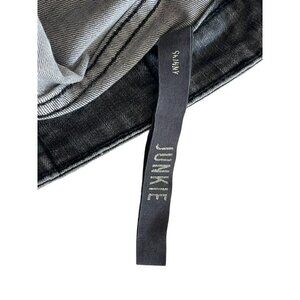 Kill City Skinny Junkie women's washed black denim jeans. Jeans are low rise skinnys with zippered hems. They no longer have fabric tag but are made of a cotton spandex blend and are a woman's size 27.