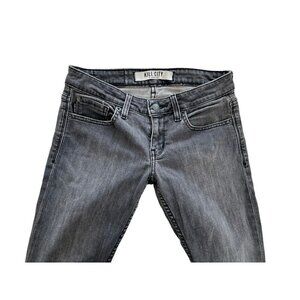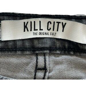 Kill City Women's Sz 27 Junkie Fit Skinny Low Rise Washed Black Jeans Zippers