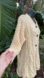 This pretty sweater is 100% Marino wool. It has some different patterns on it including a cable knit. The buttons seem to be wooden. A lovely tunic length and excellent condition.