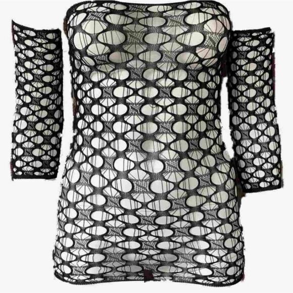 Heat up the night in the lustful Fever Net Dress. This figure-hugging outfit is perfect for those intimate moments... Sizing: -Weight: 150-250lbs, Height: 5'7"-6'2" Details: - 3pcs Set (Sleeveless Dress & Gloves) -Sleeves are not attached to dress - Cut out detail - Sheer fishnet design - Soft and stretchy - Durable - Composition: 92% Nylon 8% Spandex