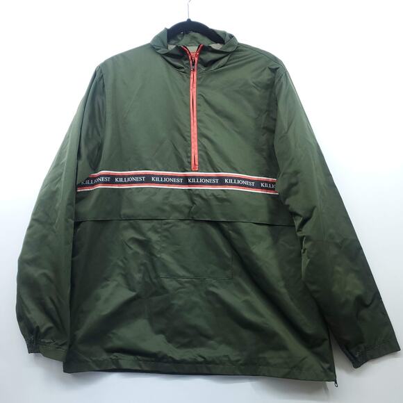 Killion Anorak Windbreaker Jacket Mens Large Olive Half Zip Pockets Long Sleeve