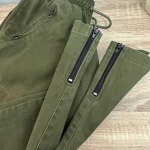 Killion Brand Twill Trackers in Olive Green Size M Joggers Zippered Pockets and Ankles Moto Style Elastic Waist Outdoors Adventure