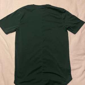 Killion Men's Athletic Dry Fit T-Shirt in Army Green, Size Small. This shirt features a comfortable blend of 35% Cotton, 60% Polyester, and 5% Spandex, offering a flexible and breathable fit. The design includes a rounded hem for a modern atheletic look. In excellent pre-owned condition with no stains or holes.