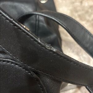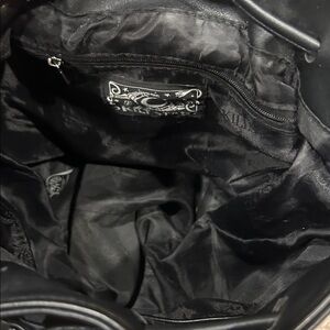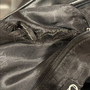 In good used condition. Has some signs of wear/spots. It’s missing some of the dangly pieces at closure and has a tear on the inside pouch. Approximately 11 inches in height by 11 inches in width.
