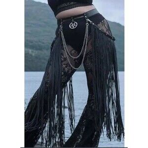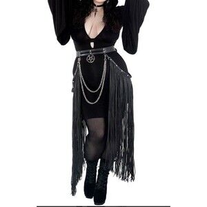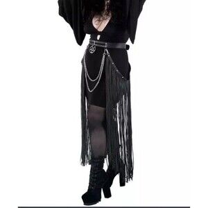 Killstar Belt Aviana Fringe Chaps Chains Sz 25 ~ 29in Goth Punk Steampunk