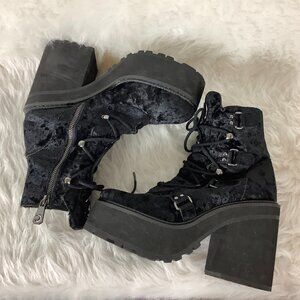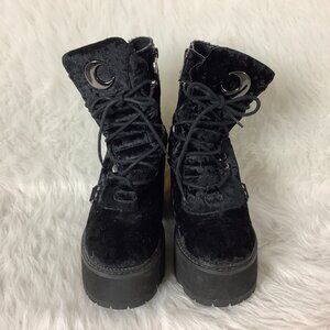 Killstar Black Velvet Broom Rider Platform Boots EU 41 US 10