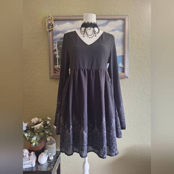 Killstar gothic cathedral dress with bell sleeves, size M. Excellent condition. Side zip, no stretch. Accessories not included.