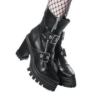 Killstar Enslave Me 6 Boots brand new with box - Faux Leather.- Contrasting Croc-Panels.- Double-Zip Front w. Statement Buckles.- 5"Heel With 3" Platform.-#goth #gothic #ratbaby #too fast #sourpuss #kreepsville 666 #blackcraft #killstar #spooky #restyle #yru #demonia #witch #witchcraft #pleaser #yru #boots #punk